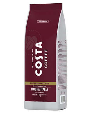 Mocha Italia Signature Blend od Costa nabízí hladkou a oříškovou vyváženou chuť. Unikátní směs zrn Arabica a Robusta nabízí jemnou, vyváženou chuť, která se hodí k jakémukoli kávovému nápoji na bázi espressa.